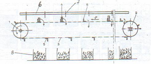 repartizarea bustenilor sortati pe lagare sau platforme;