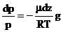 Aceasta ultima ecuatie se poate integra intre doua niveluri p0 si p, cu p0 presiunea corespunzatoare nivelului marii.