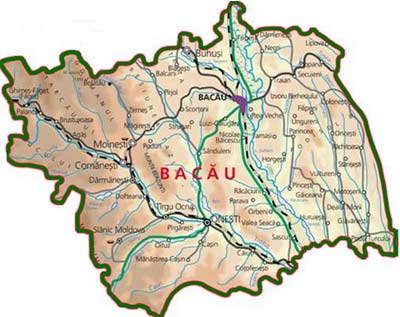 Municipiul Bacau, resedinta judetului cu acelasi nume, se afla in Nord-Estul tarii, in partea central-vestica a Moldovei, la doar 9,6 Km in amonte de confluenta Siret-Bistrita.