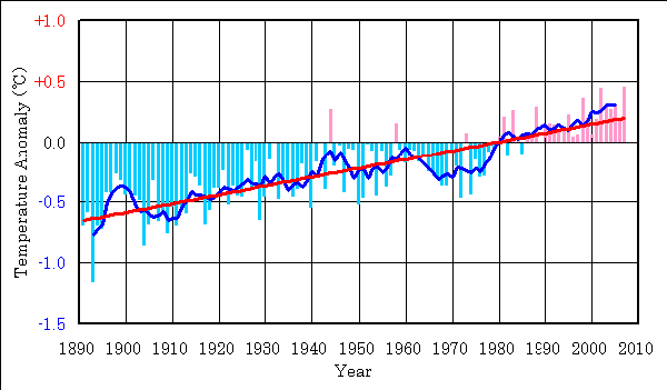 La nivel global, in luna ianuarie 2007 valoarea medie a temperaturii la suprafata au fost cu 0,45oc peste media anilor 1971-2000 si a fost cea mai ridicata din 1891.fig2