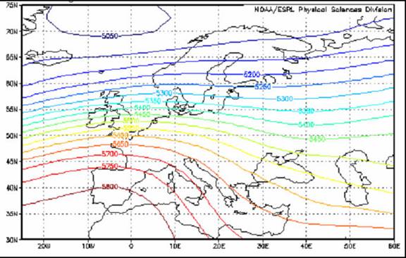 In intervalul 28-31 ianuarie dorsala din partea de vest a continentului are o deplasare spre nordul Europei,iar iar regiunile din centrul si nord-estul Europei se afla antr-un camp de geopotential scazut datorat aparitiei unui talveg in aceasta zona.(fig6)