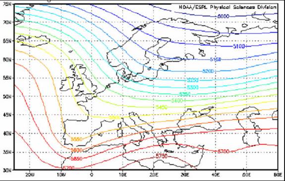 In intervalul 20-27 ianuarie peste cea mai mare parte a europei circulatia a fost zonala.Geopotentialul creste in partea de nord-est a Atlanticului, ceea ce favorizeaza adancimea unui talveg peste vestul continentului.(fig5)
