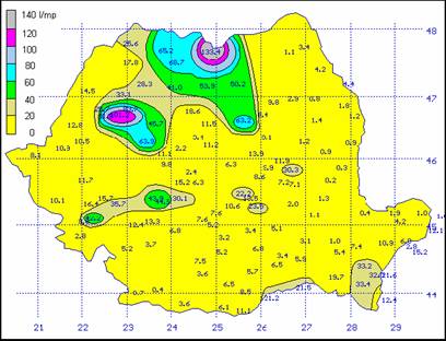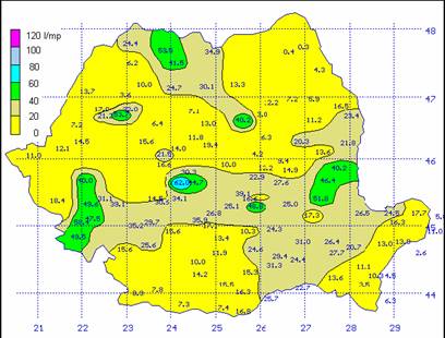 cuprinse intre 6,1 si 8,0oc in regiunile sudice ,estice si unele zone din centrul tarii.In puncte