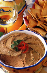 Ingrediente (pentru 4-6 persoane): 125 g unt, 1 ceapa mare tocata, 2 catei de usturoi (zdrobiti), 2 felii de slanina (fara sorici) taiata bucatele, 250 g ficatei de pui curatati, 1/4 lingurita cimbru uscat, piper negru macinat, 3 linguri smantana, 1-2 linguri coniac, inca 30 g unt topit. Pentru garnisit: 60 g unt topit, 2 linguri de codite de ceapa verde, taiate marunt. Mod de preparare: Se topeste untul (125 g) intr-o cratita si se calesc in el - pana ce se inmoaie - ceapa, usturoiul si bucatelele de slanina. Se adauga ficateii de pui si se dunstuiesc si ei 5-10 minute, amestecand din cand in cand. Se iau de pe foc si se incorporeaza cimbrul, piperul, smantana, coniacul si 30 g de unt topit. Se amesteca bine (cu mixerul) pana ce compozitia devine neteda, dupa care se pune in boluri mici. Se toarna deasupra unt topit (60 g), se presara coditele de ceapa verde si se lasa la rece peste noapte. Inainte de a-l servi, pat?-ul se tine 30 de minute la temperatura camerei. Se mananca cu paine prajita sau cu bagheta proaspata.