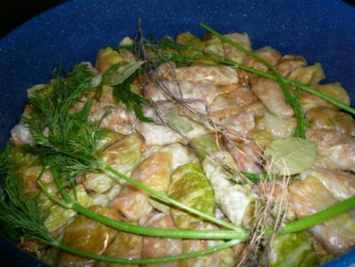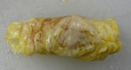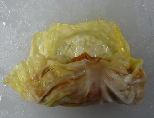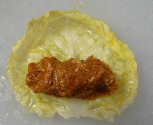 acopar carnea cu un capat al frunzei, rulez, si celalalt capat il inchei cu