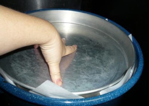Deasupra lor pun o tava de copt tort rotund, cea din imagine are 14 inch, deci