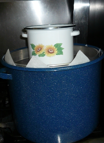 atit cit sa se potriveasca la gura oalei, iar peste ea pun o alta oala mai mica