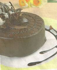 Cu un cutit incalzit in apa fierbinte se netezesc marginile tortului. Ciocolata