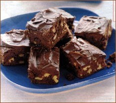 Ingrediente (pentru 12 bucati): 100 g unt, 100 g ciocolata amaruie (cu 70% cacao), 300 g zahar, 1 varf de cutit sare, 1 fiola esenta de vanilie, 3 oua mari, 125 g faina, 2 linguri cacao (25 g), 100 g miez de nuca. P 515c27f entru glazura: 7 linguri frisca, 100 g ciocolata amaruie. Mod de preparare: - Se pun la topit untul si ciocolata. Se pune untul intr-o cratita mijlocie si se lasa sa se topeasca la foc slab, amestecand intruna cu o lingura de lemn. Ciocolata se rupe bucatele, se introduce in unt si se lasa si ea sa se topeasca, amestecand in continuare. - Se adauga zaharul. Se incinge cuptorul la 180?C. Se ia cratita de pe foc, se incorporeaza zaharul, sarea si esenta de vanilie si se amesteca bine. - Urmeaza ouale. Se sparg ouale unul cate unul si se introduc in compozitie, amestecand mai departe cu lingura de lemn, pana ce se leaga bine cu restul ingredientelor. Apoi se varsa compozitia intr-un castron. - Se prepara aluatul. Se amesteca faina cu praful de copt, iar miezul de nuca se taie bucatele (mai mari). Compozitia din castron se freaca spuma - circa 1 minut - cu mixerul, dupa care se adauga mai intai miezul de nuca, si apoi amestecul de faina si cacao si se mai freaca aproximativ un minut. - Se pune prajitura in tava. Se tapeteaza o tava dreptunghiulara (circa 28 x 23 cm) cu hartie pentru copt, se toarna aluatul si se intinde in mod egal pe fundul tavii. Se coace circa 30 de minute, se scoate si se lasa sa se raceasca (in tava) aproximativ 15 minute. - Se intinde glazura cu un cutit. Se desprinde prajitura de marginile tavii, se rastoarna si se indeparteaza hartia pentru copt, apoi se intoarce pe partea cealalta si se lasa sa se raceasca. Se unge cu glazura, se tine o ora la rece si se taie in 12 bucati. Pentru glazura: Se pune frisca pe foc sa dea cateva clocote, se ia cratita de pe foc, se introduce ciocolata si se lasa sa se topeasca.