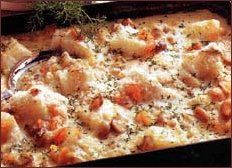 Ingrediente: 1 kg caise, 3 oua, 250 g zahar, coaja de la o lamaie, 2 linguri de rom. Mod de preparare: Se spala caisele, li se scot samburii, se dau pe razatoarea mare. Galbenusurile se freaca cu 200 g zahar, se adauga coaja rasa de lamaie, se amesteca caisele rase, romul, albusurile de ou batute spuma cu 50 g zahar. Compozitia se toarna intr-un vas de Jena sau de pamant uns cu unt, se baga in cuptor la foc potrivit, vreme de 30 de minute. Cand este gata, se pudreaza cu zahar si se serveste cald. In locul caiselor se pot folosi si piersici.
