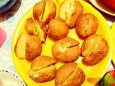 MOD DE PREPARARE: Speli cartofii si ii fierbi. Cat fierb, cureti usturoiul. Cu el freci bine o tava. Scoti cartofii din cratita, ii lasi sa se raceasca, apoi ii cureti si ii tai rondele. Asterni pe tava un strat de cartofi, unul de feliute de kaiser, inca unul de cartofi si, peste toate, sosul pe care il prepari amestecand untul cu faina, laptele, praful de sare si piperul. Dai la cuptor sa se rumeneasca.