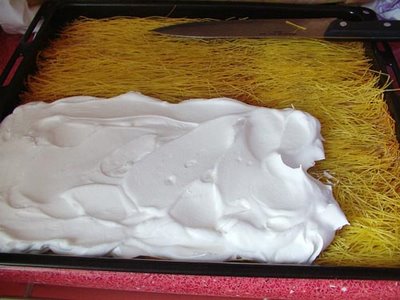 Cand fideaua s-a racit o taiem in doua, punem pe o jumatate un strat de frisca