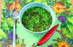 o lingura de faina, 500 ml bors, usturoi, patrunjel, leustean.
