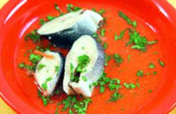 INGREDIENTE: un kg de cod, un morcov, o ceapa, 50 gr unt, 500 gr cartofi, patrunjel, lamaie, vin alb, sare, piper.