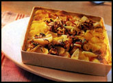 se aseaza un strat de cartofi, unul de carne etc. intr-o forma
