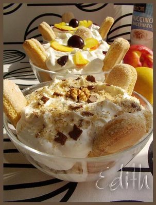 am facut-o dupa gustul meu: piscoturi maruntite pe fund, strat de frisca,