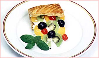 Pentru a finisa prajitura, sectionati la mijloc bucatile de foitaj, adaugati