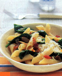 strecoara macaroanele si se amesteca cu spanacul si jumatate din cascavalul ras.