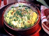 Dati-i cateva minute la cuptor - sub gril -, presarati deasupra coditele de ceapa ramase si serviti-i imediat.