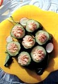 pe un platou, garnisiti-le cu feliute de ridiche si serviti-le ca aperitiv sau