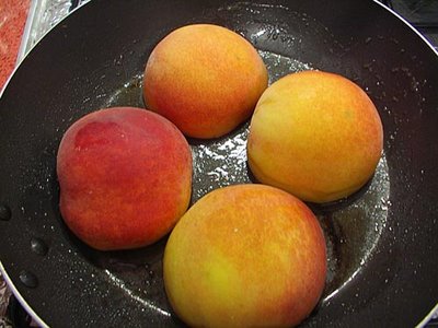 Punem jumatatile de piersici cu fata in jos pe gratar sau in tigaie