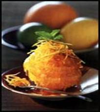 Cand caramelul este gata, turnati-l intr-un firicel subtire peste portocale, presarati-le apoi cu coaja de lamaie confiata si scursa, ornati-le cu frunzulite de menta si serviti-le imediat, pentru ca zaharul caramelizat sa fie crocant.