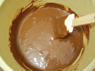 Se adauga apoi faina amestecata cu cacao si praful de copt.