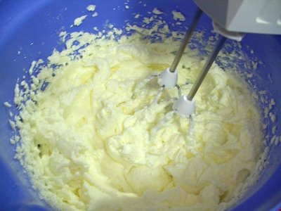Untul (putin lichefiat) se freaca cu zaharul pana devine spuma, apoi se