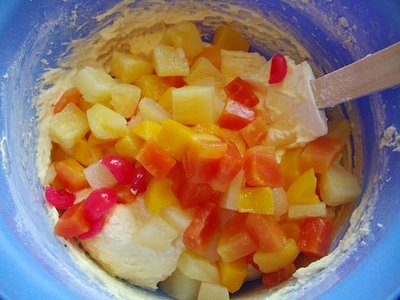 Eu am folosit cam o cutie si jumatate de fructe (fructe exotice si cocktail de