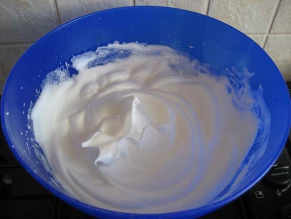 se bat spuma, se pune zaharul in ploaie si se bat pana se topeste