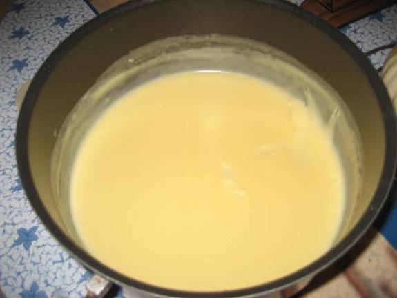 faina si se toarna peste laptele de pe foc. Se ia de