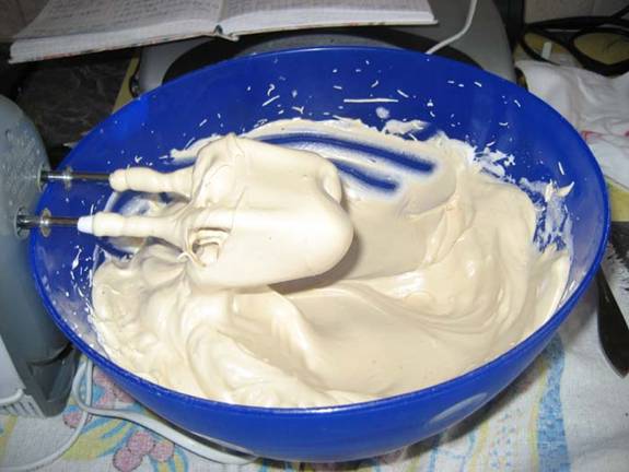 castron. Se pun 8 linguri de zahar, una cate una si se bate in continuare pana