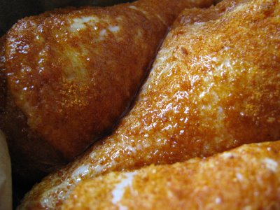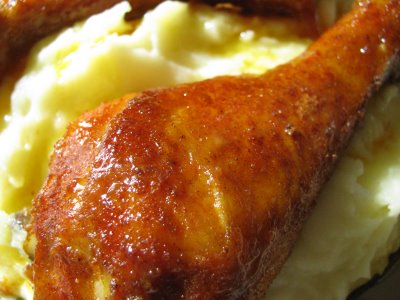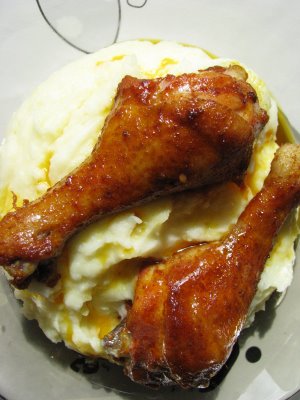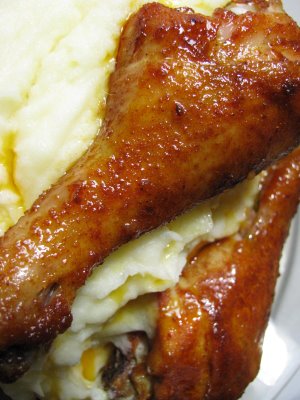 Cu o jumatate de ora inainte sa ii scot din cuptor, indepartez folia de aluminiu si ii stropesc in repetate randuri cu untura scursa in tava.