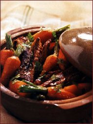 17417n137r 17417n137r Ingrediente (pentru 4 persoane): 1,2 kg piept de vita, 1 lingura zahar, 2 legaturi morcovi tineri, 2 linguri ulei de floarea-soarelui, 4 cepe verzi, 30 g unt, 1 cub de supa de carne (de vaca) concentrata, 150 g smantana groasa, patrunjel verde, sare, piper macinat. 17417n137r 17417n137r Mod de preparare: Se prepara zeama de carne, diluand cubul in 500 ml de apa clocotita. Se-ncing intr-o cratita uleiul si untul si se prajesc bucatile de carne la foc mic pana ce se rumenesc pe ambele parti. Se adauga ceapa curatata si taiata marunt, 200 ml de zeama de carne, sare si piper, se acopera cu un capac si se lasa sa fiarba incet, circa o ora si jumatate. Se curata morcovii (se lasa putina verdeata la capete), se introduc (intregi) 5 minute intr-o oala cu apa (multa) sarata clocotita, se scurg, se pun in cratita cu carne, impreuna cu zaharul si se mai lasa sa fiarba inca 30 de minute. Cand mancarea este gata, se incorporeaza smantana si se presara patrunjelul verde tocat. Se gusta inca o data de sare si de piper si se serveste imediat.