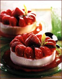 17417n137r 17417n137r Ingrediente (pentru 6 persoane): 500 g capsuni, 500 g branza de vaci (fara cocoloase), 150 g zahar pudra, 4 albusuri, 1 lingurita esenta de migdale, 3 foi de gelatina, 3 linguri zahar tos. 17417n137r 17417n137r Mod de preparare: intr-un castron se amesteca branza de vaci cu 100 g zahar pudra si cu esenta de migdale. Foile de gelatina se pun la inmuiat intr-un bol cu apa rece, iar intr-o craticioara se pun la fiert 3 linguri de apa. Se presara gelatina inmuiata intre palme, ca sa se scurga, se lasa sa se topeasca in apa clocotita (craticioara se ia de pe foc), amestecand intruna, se toarna peste branza de vaci si se amesteca bine cu telul. Se bat albusurile spuma si se incorporeaza si ele, usor, in compozitia de branza preparata anterior. Se tapeteaza 6 forme rotunde de budinca (cu peretii drepti) cu hartie de pergament, se toarna in ele branza si se tin la rece cel putin 4 ore. Se spala capsunile si se indeparteaza coditele. Sase dintre ele se lasa intregi, 200 g se mixeaza cu restul de zahar pudra, pana ce se obtine un sos, care se pastreaza la rece, iar celelalte se taie in patru. Se desprind sarlotele cu o lama subtire de cutit de marginile formelor, se rastoarna pe farfurii si se indeparteaza hartia. La mijloc, se aseaza cate o capsuna intreaga, iar pe margini - capsunile taiate sferturi, de jur-imprejurul lor. Se toarna sosul pastrat la frigider, se pudreaza cu zahar tos si se servesc imediat.