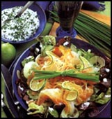 (pentru 4 persoane): 1 salata verde (creata sau laptuca), 250 g somon afumat,