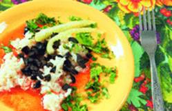 MOD DE PREPARARE: Orezul se pune la fiert intr-un vas impreuna cu apa si cubul de supa de pui. Se taie ceapa fasii, iar rosiile si ardeiul se omogenizeaza cu suc de lamaie, sare, ulei si masline tocate fin. Usturoiul se piseaza si se adauga in acest amestec. In toata compozitia se pun orezul si piperul si se da putin la frigider.