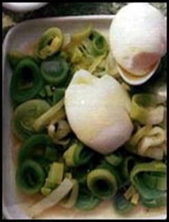 Ingrediente (pentru 3 portii): 500 g praz, 3 oua. Pentru sosul