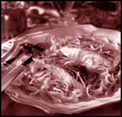 Scoateti bucatile de peste din cuptor, asezati-le pe un platou, puneti de jur imprejur telina, decorati-le cu marar verde (taiat cu foarfeca) si serviti-le imediat.