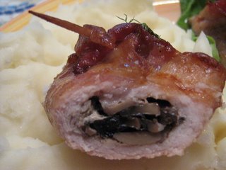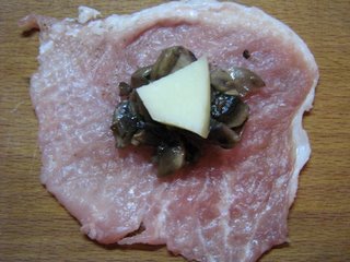 se pune o lingurita de ciuperci, o bucatica de cascaval.
