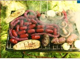 Despre carbunii potrivitiDaca folositi un gratar cu carbuni, e bine sa ii asezati pe un singur strat, astfel incat sa se afle la cativa centimetri de mancare. Carbunii trebuie sa arda singuri timp de 5-10 minute inainte de a se face jarul si a putea pune carnea direct la preparat. Sunt numai buni atunci cand la lumina zilei capata o culoare gri sau stralucesc rosiatic in intuneric, in cazul in care va incumetati la un gratar pe timp de noapte. Vreti sa testati temperatura focului? Tineti mana deasupra lui. Daca rezistati cam 3-4 secunde, inseamna ca focul este numai bun si puteti declansa operatiunea "friptura". |