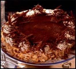 Se scoate tortul din forma, se unge pe margini cu frisca si se lipesc de jur imprejur feliutele de migdala. Restul de frisca se toarna intr-un cornet si se fac rozete mici pe suprafata tortului, peste care se presara praful de cacao si ciocolata rasa.
