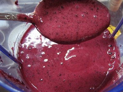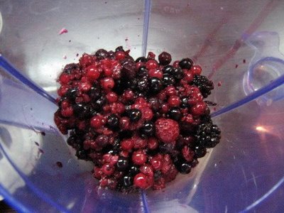 Fructele se dezgheata, se zdrobesc in blender impreuna cu zaharul. Separat se
