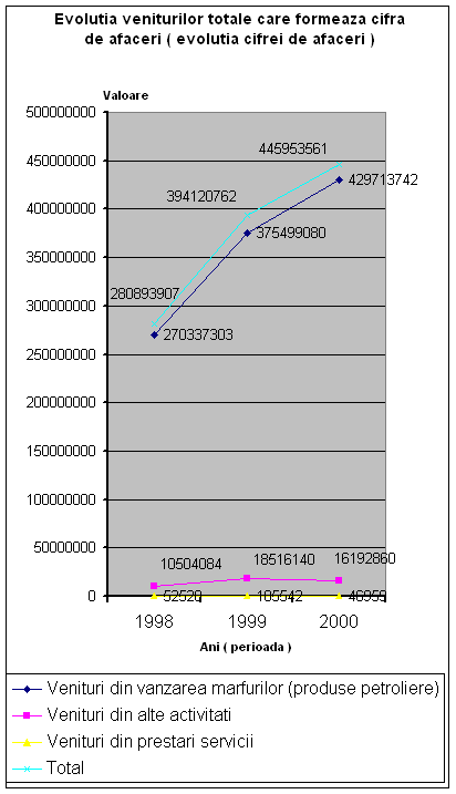 Din tabelul anterior rezulta ca cifra de afaceri a inregistrat o crestere in valoare absoluta cu 165.059.654 mii lei in anul 2000, fata de anul 1998 si cu 51.832.799 mii lei in anul 2000, fata de anul 1999.