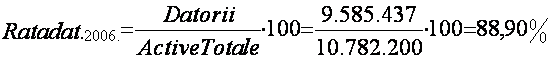 Un raport mai mare 1,5 (2005), ne arata ca întreprindere este capabila sa-si onoreze datoriile fata de anumiti terti, în schimb o valoare mai mica de 1,5 (2006), dovedeste riscul de insolvabilitate a întreprinderii.