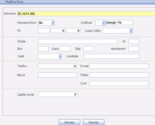 s-a aplicat - controlul tipului de data pt cod fiscal