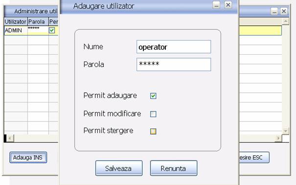 Ne vom loga drept utilizator Operator si vom controla drepturile acestuia pt operatiile din meniu