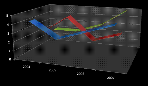 In ceea ce privește anii 2006 și 2007 putem observa ca au celeași coordonate și anume: