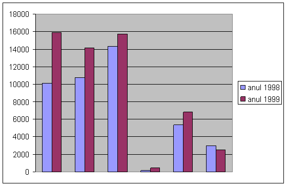 ● resursele atrase sub forma certificatelor de depozit in lei au inregistrat o dinamica pozitiva de la un an la altul din punct de vedere al acumularii de resurse in lei la o dobanda fixa si termene de minim 3 luni, utilizarea acestuia de catre clienti demonstrand atractivitatea produsului. Aceasta evolutie este evidentiata si de ponderile in total resurse in lei inregistrate de certificatele de depozit la 31.12.1992 de 0,3% si respectiv de 13% la 31.12.1999;