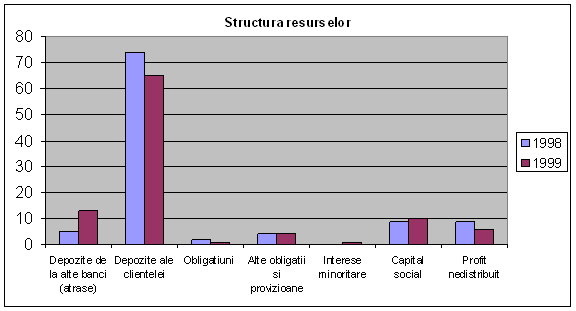 In anul 1999, depozitele au cosntituit, ca si in anii trecuti, sursa de baza pentru dezvoltarea bancii.